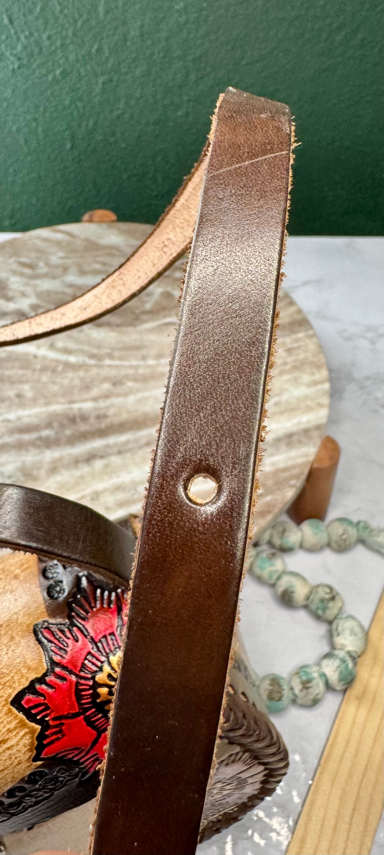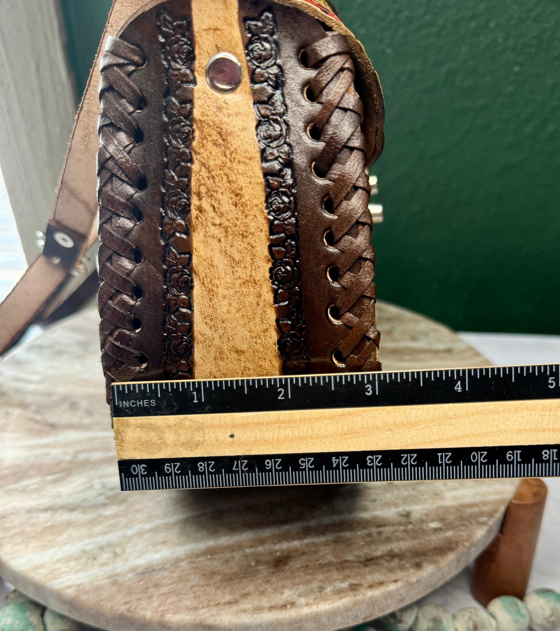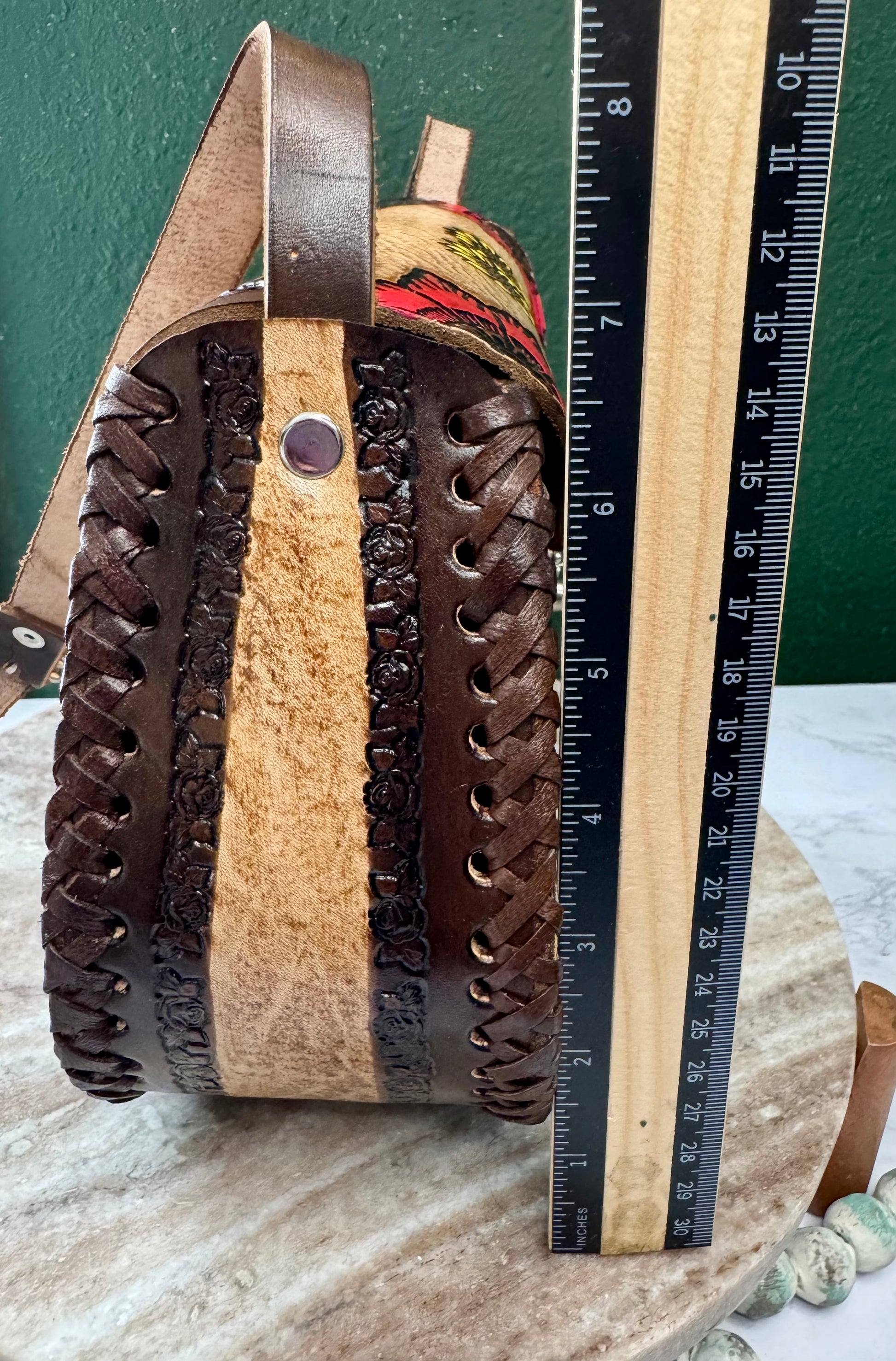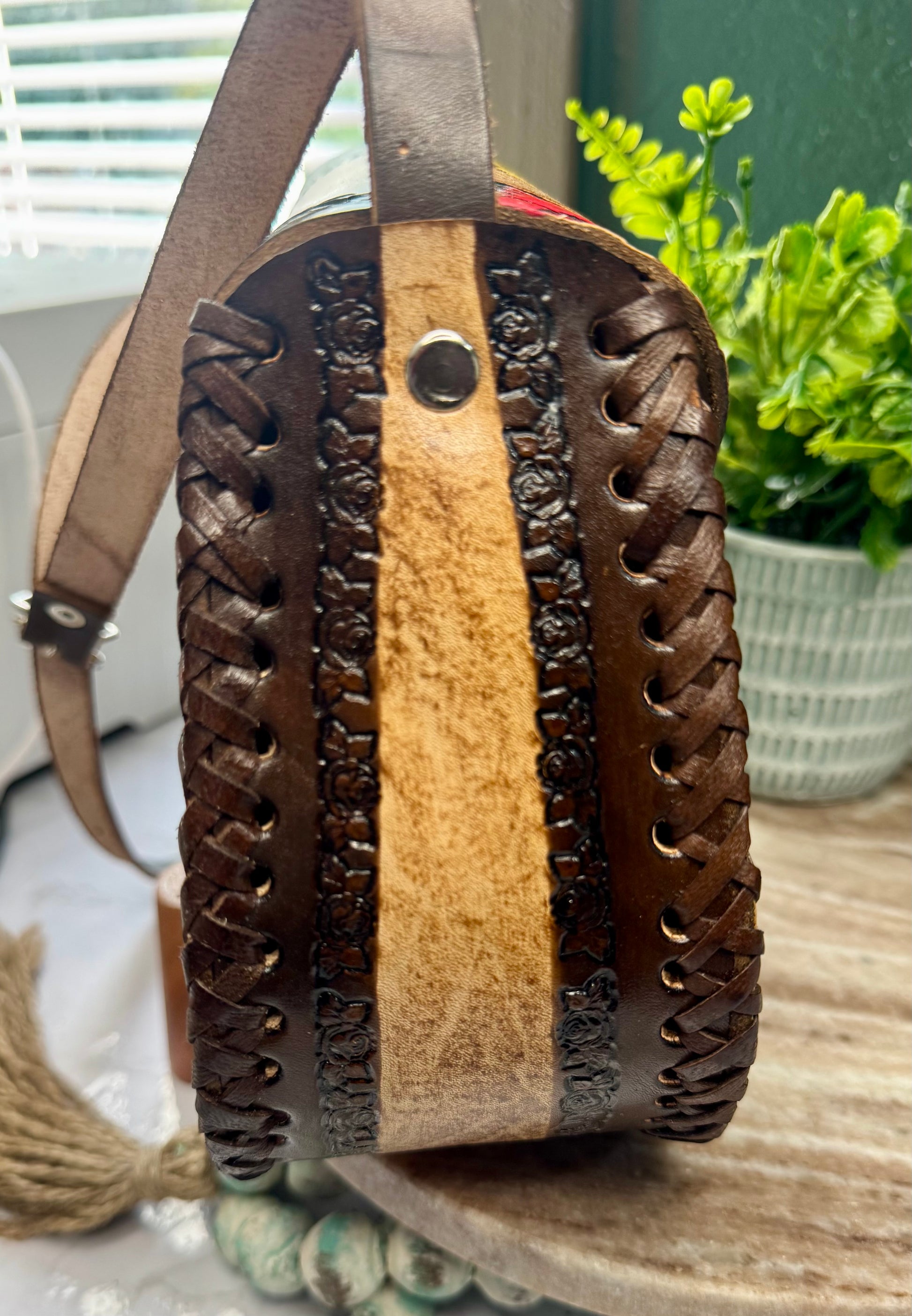 This purse is hand-tooled (cincelada) and hand-painted, which means small imperfections, variations, or minor marks may be present. These are not flaws, but a natural part of the handmade process and add to the uniqueness and character of each piece. No two bags are exactly alike each one is truly one of a kind.