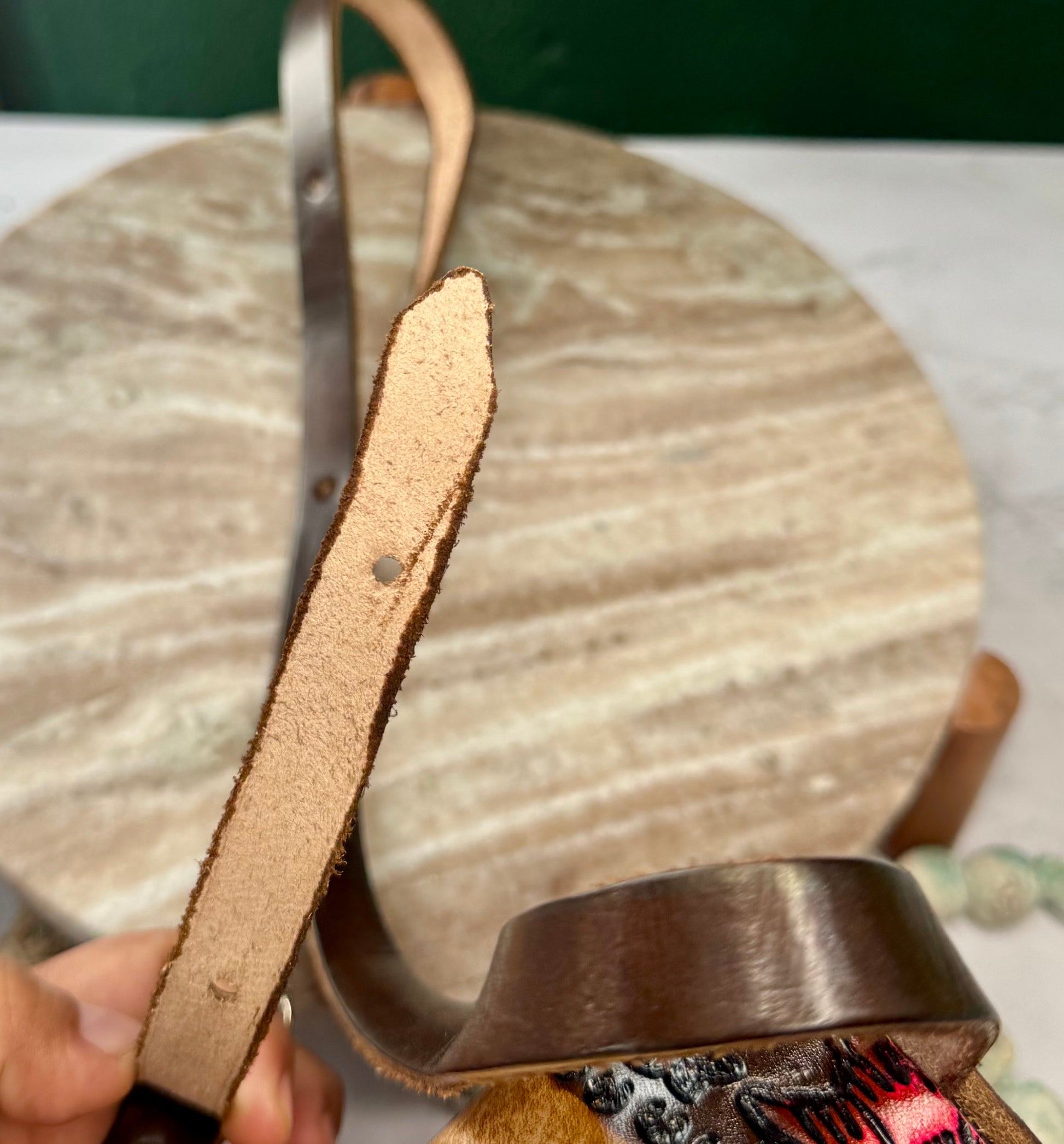 Please note: Due to the handmade nature, slight variations in color, tooling, and paint may occur.