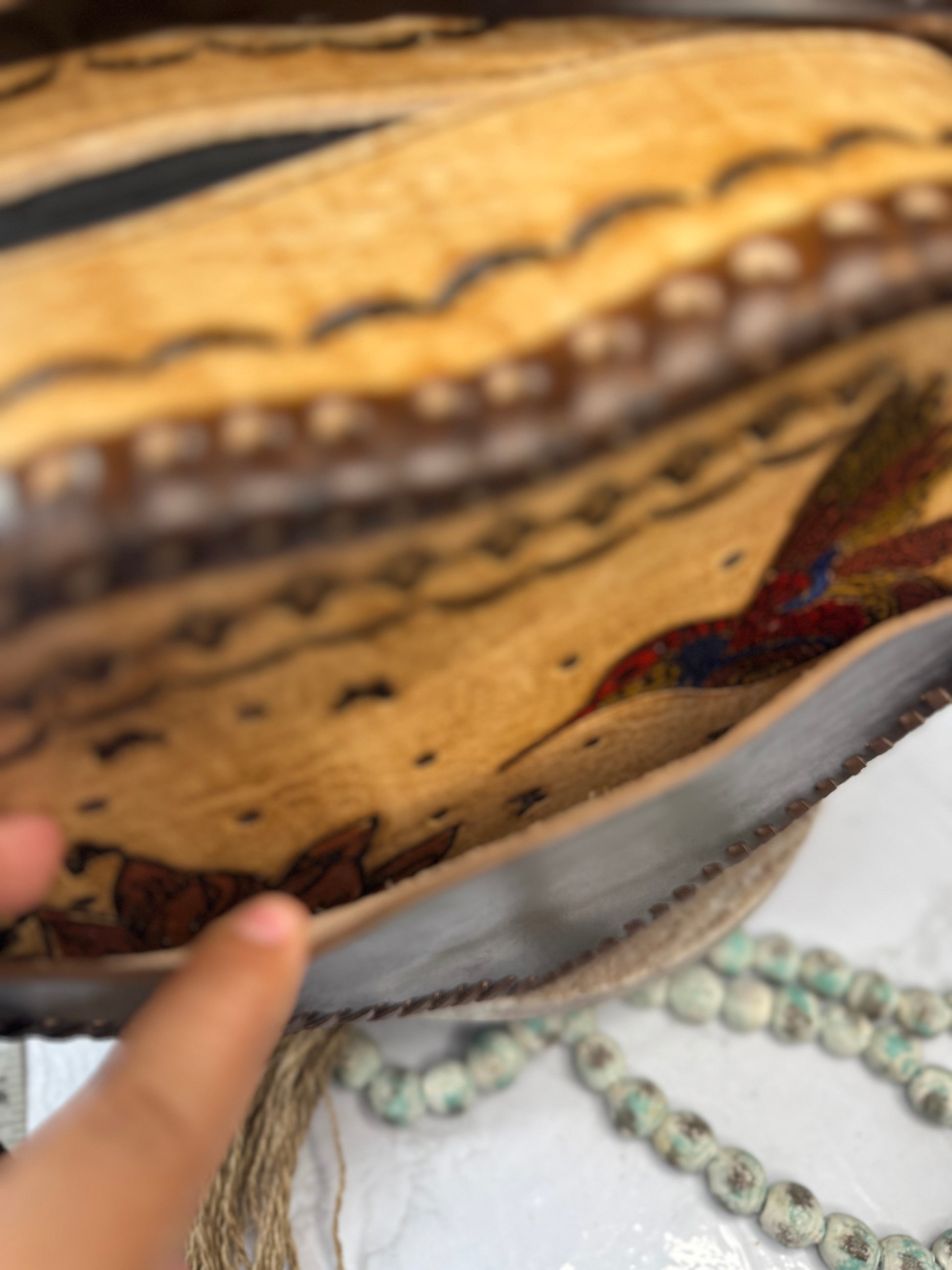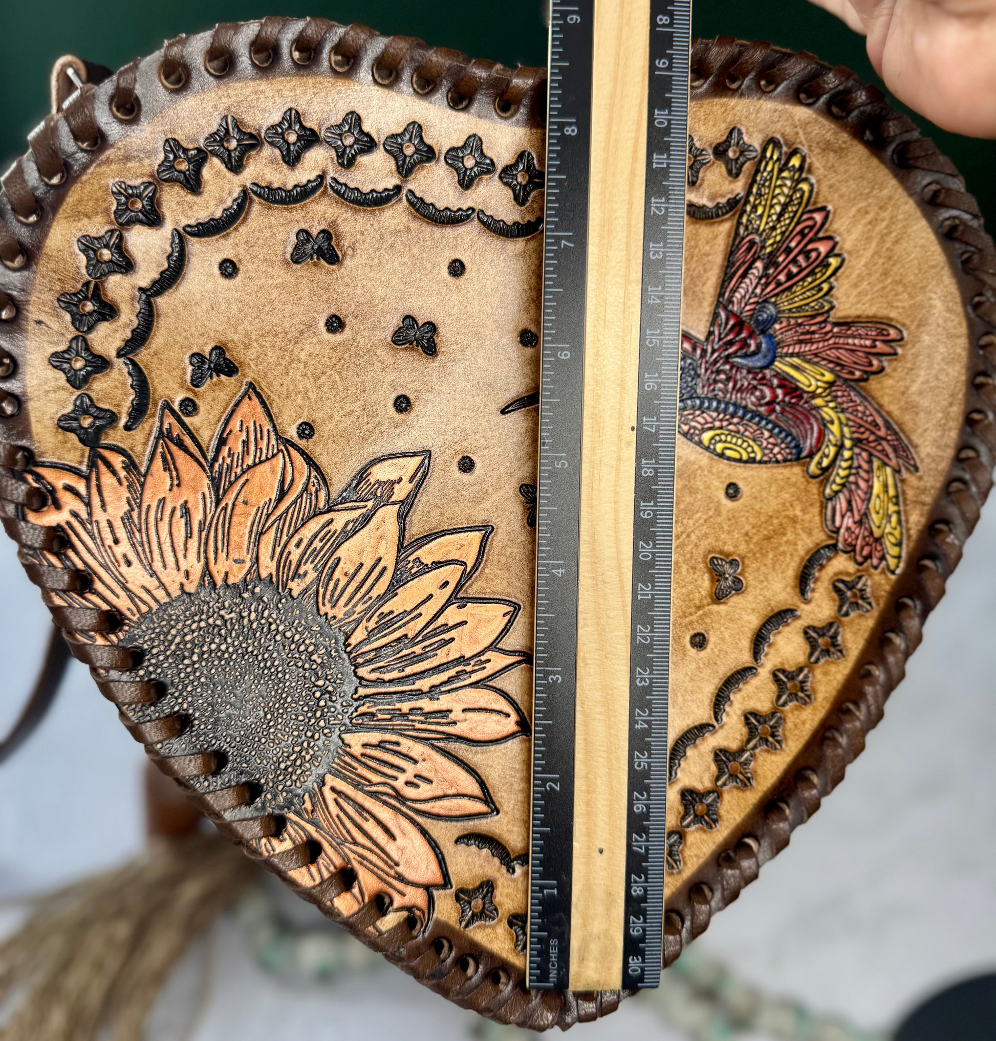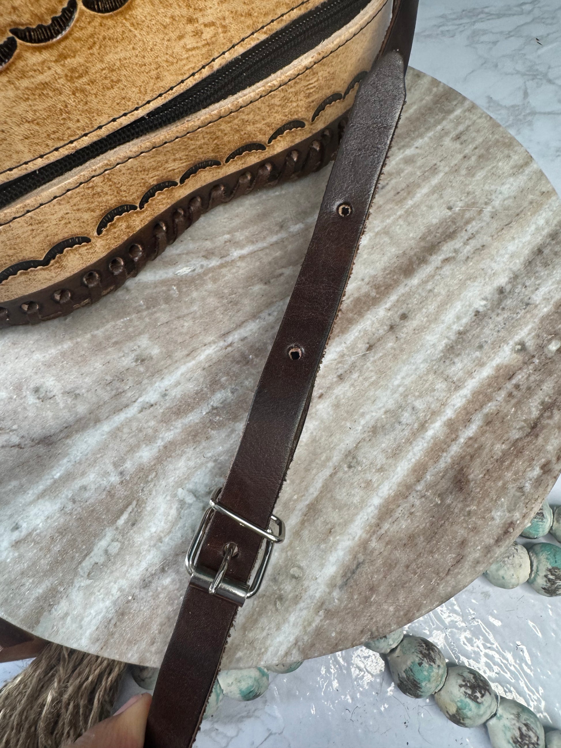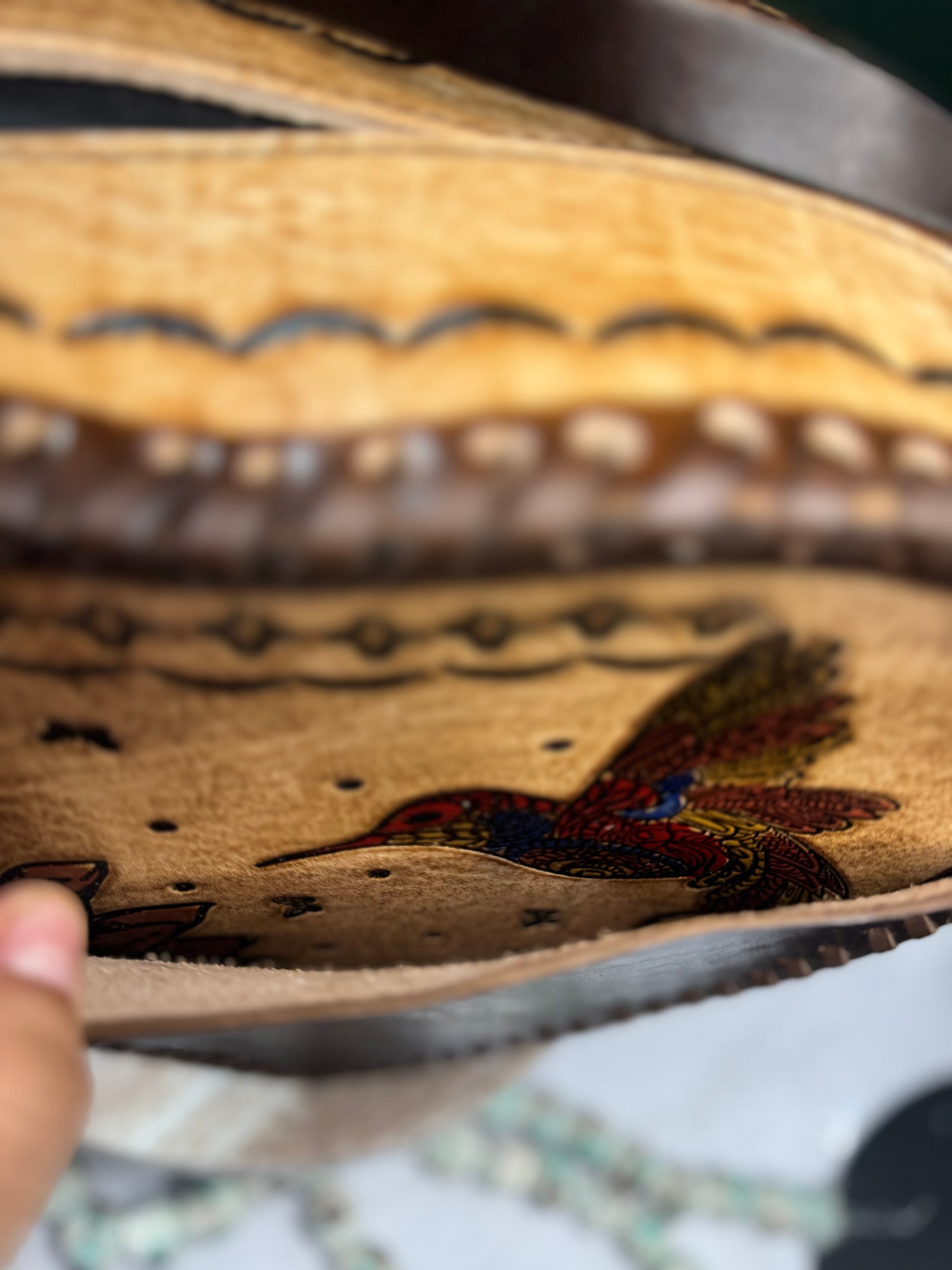 This purse is hand-tooled (cincelada) and hand-painted, which means small imperfections, variations, or minor marks may be present. These are not flaws, but a natural part of the handmade process and add to the uniqueness and character of each piece. No two bags are exactly alike each one is truly one of a kind.