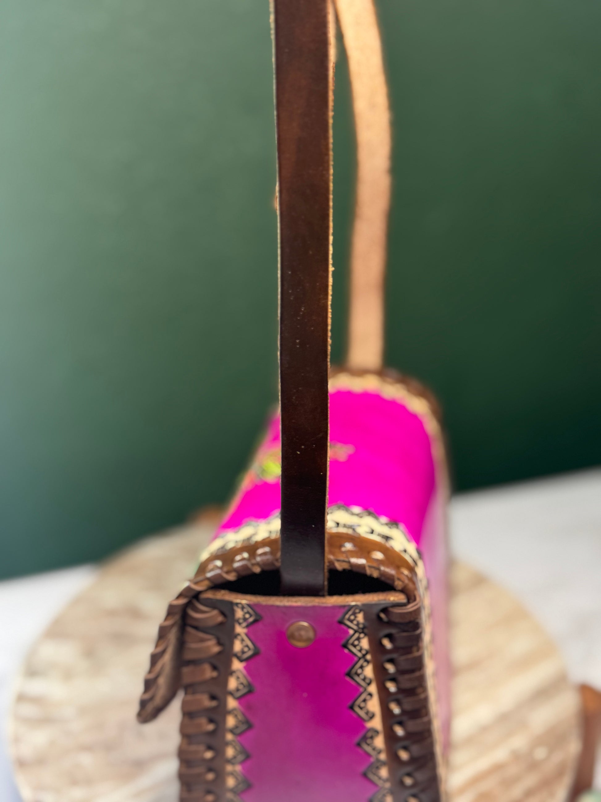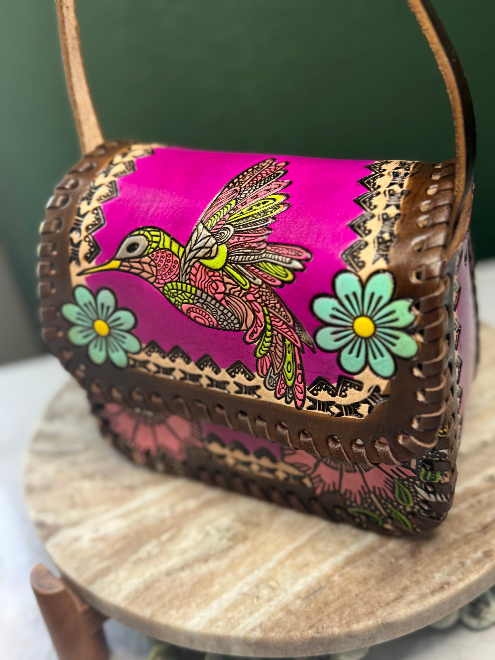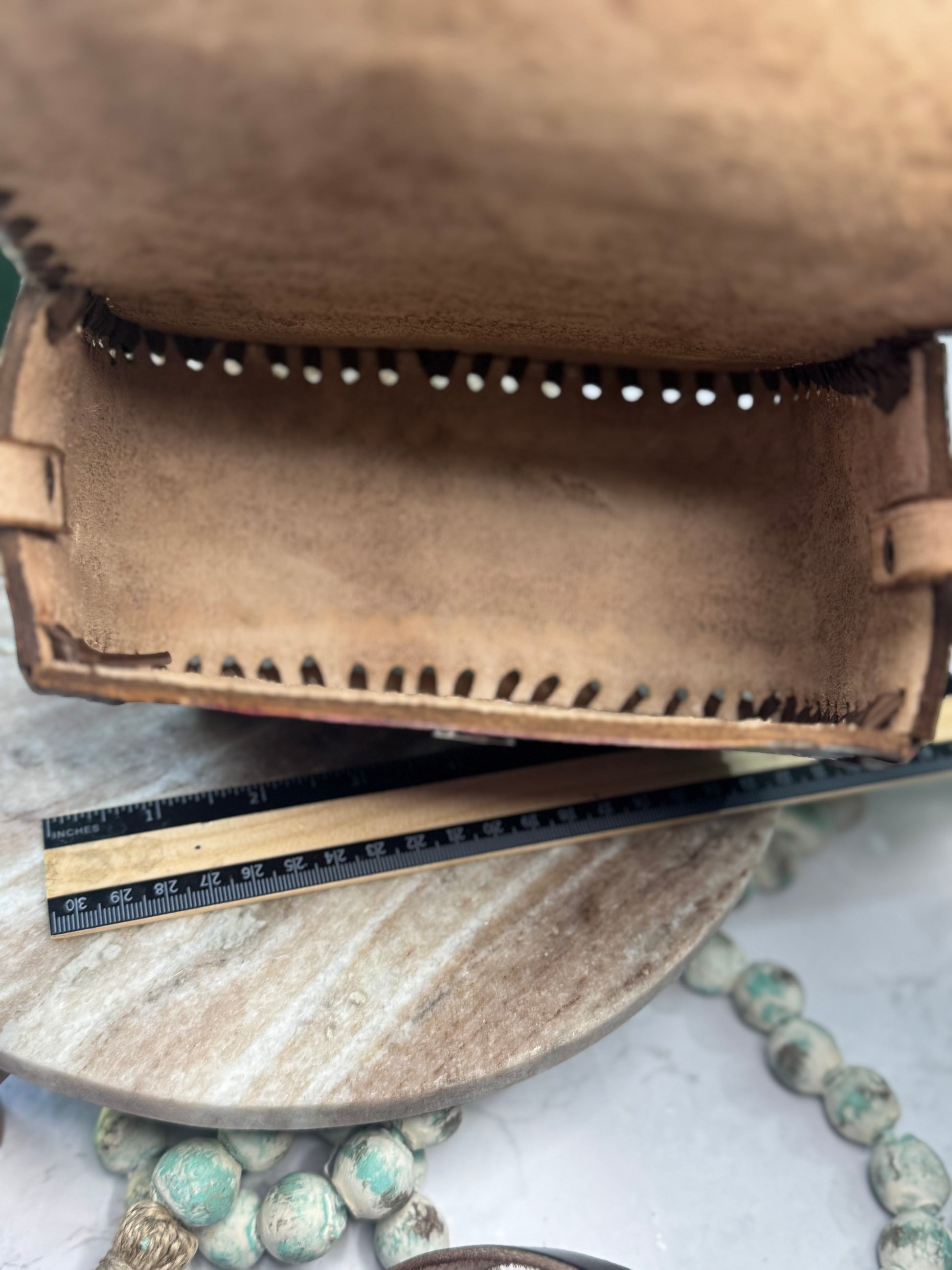 This purse is hand-tooled (cincelada) and hand-painted, which means small imperfections, variations, or minor marks may be present. These are not flaws, but a natural part of the handmade process and add to the uniqueness and character of each piece. No two bags are exactly alike each one is truly one of a kind.