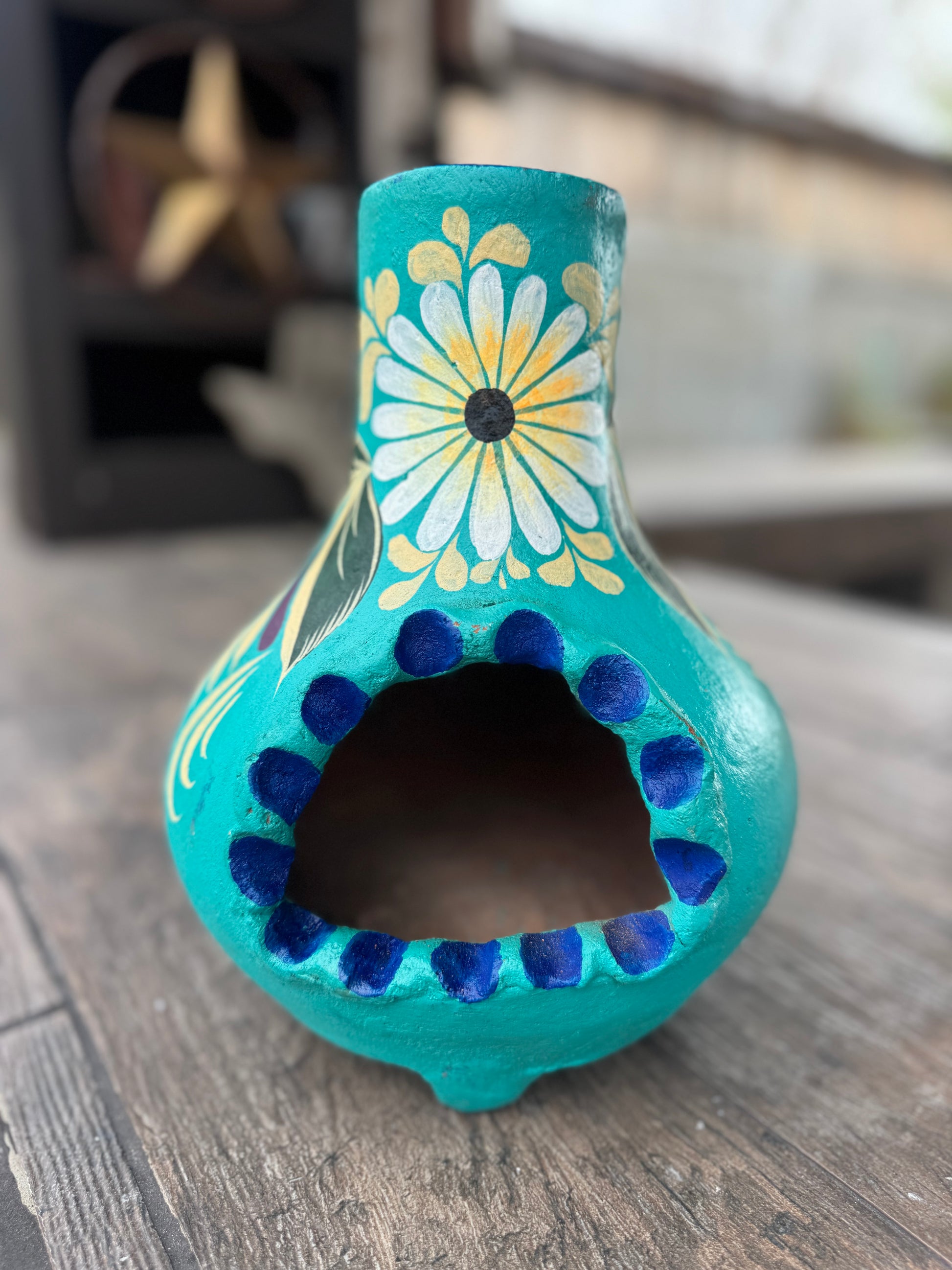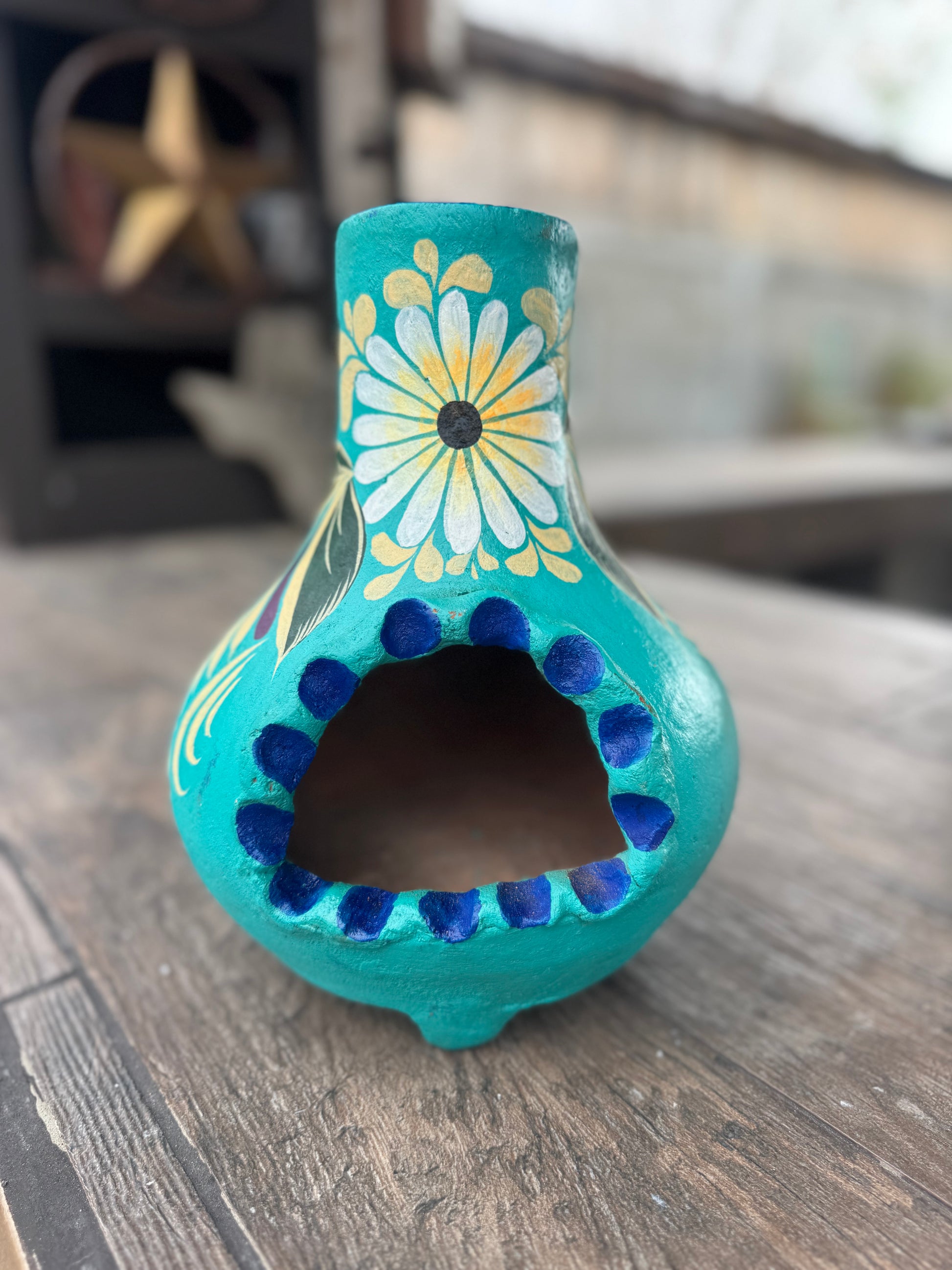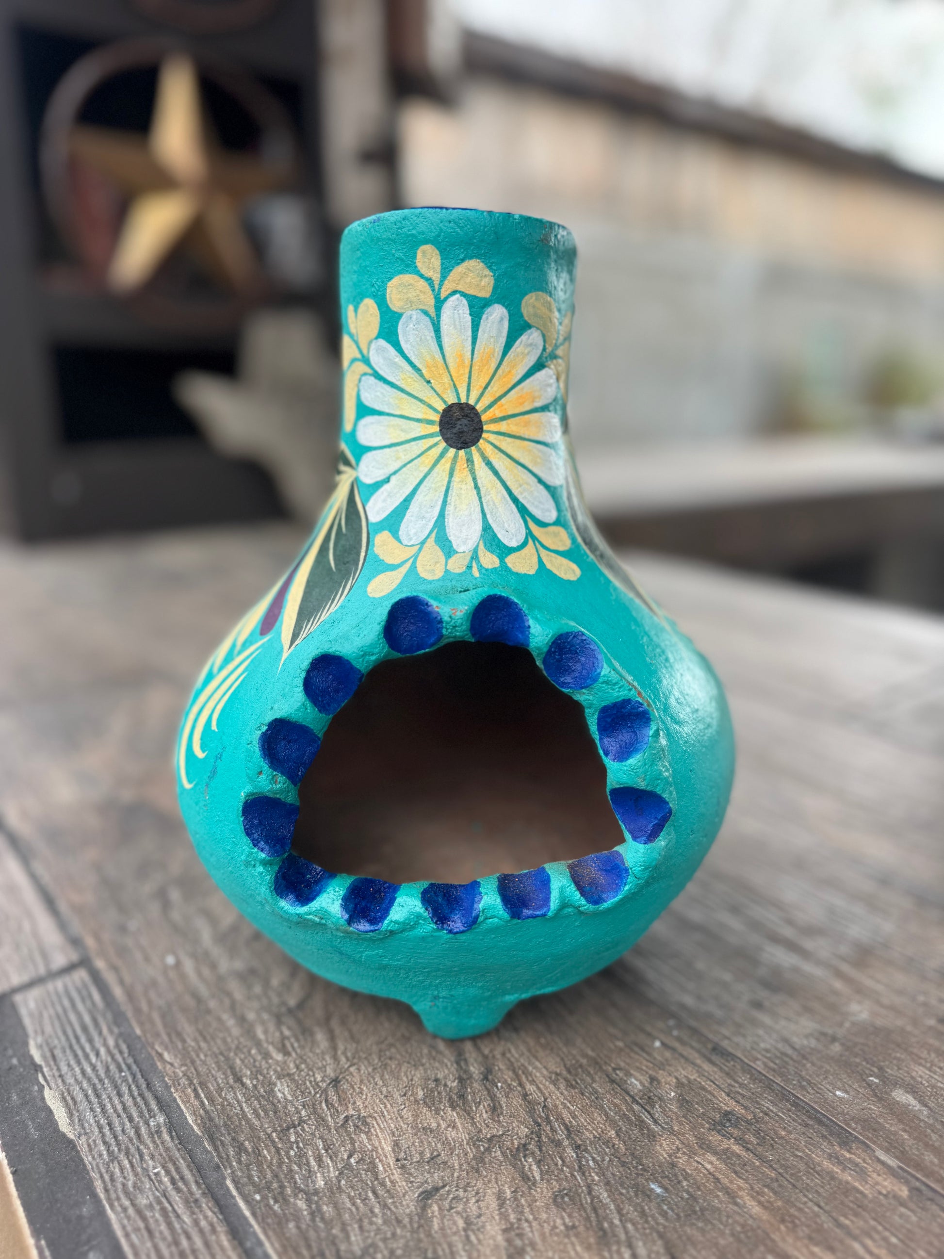 Small clay chimney, ideal for candles, palo santo, and similar uses. Handmade, so slight imperfections, chipping, or variations are natural and part of its charm.