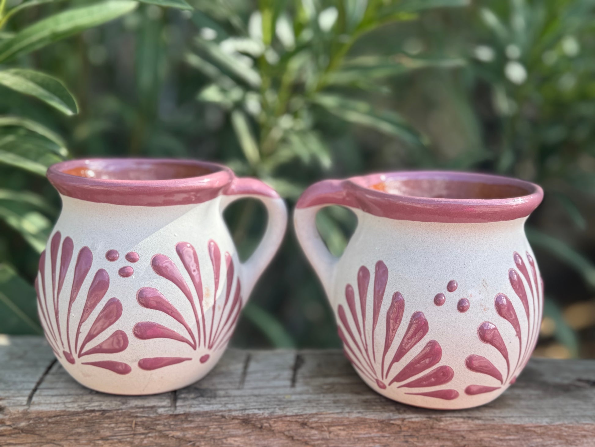 Set of Barro Talavera Style Mugs /Pink strokes